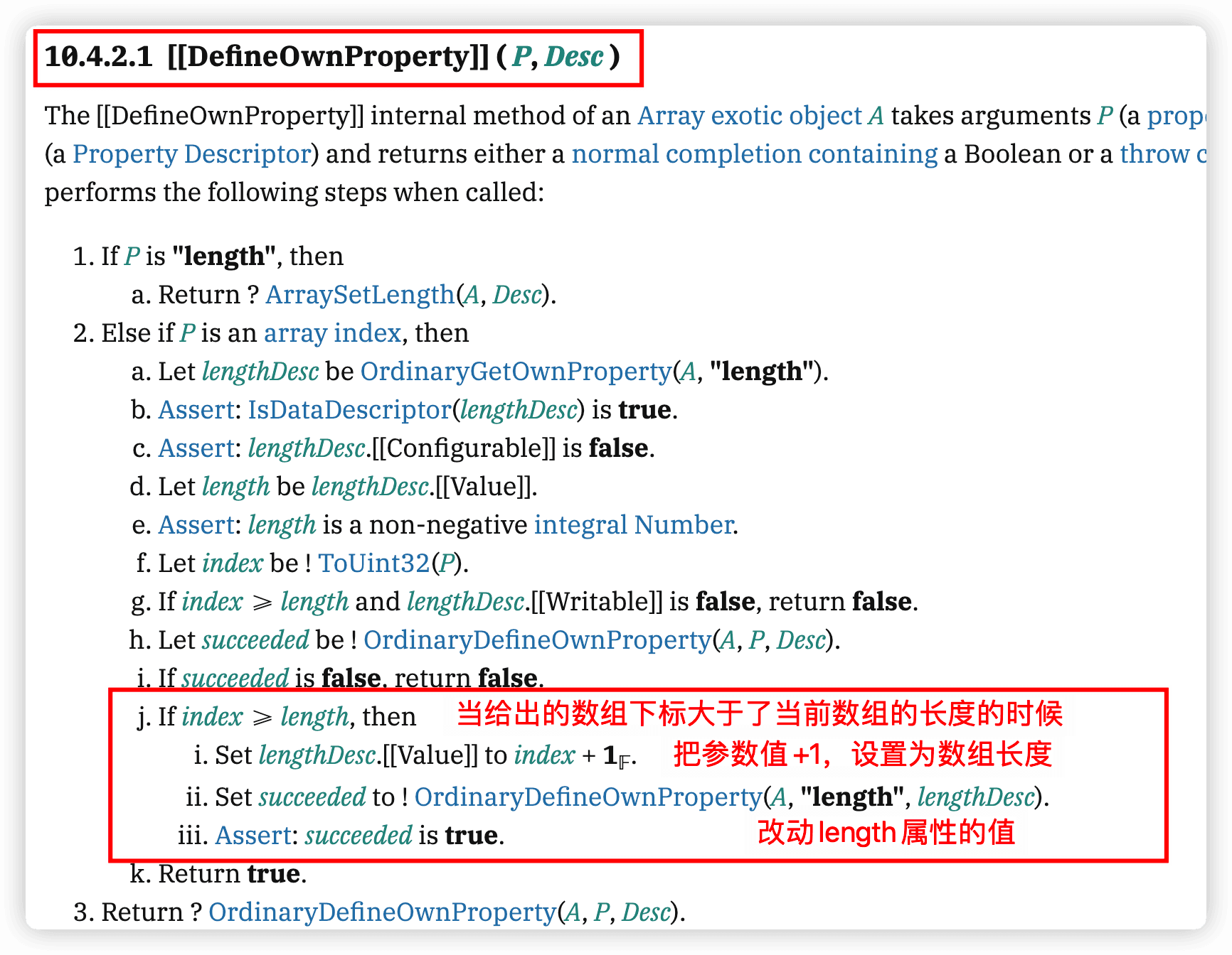 为什么会少了数组长度的处理呢?我们需要看一下 ecma262 的原始操作: